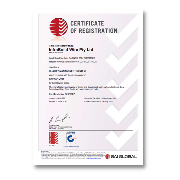 ISO9001:2015 Quality Management System – InfraBuild Wire